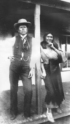 | Quanah con la moglie Topay davanti alla Casa della Stella, nella riserva. |